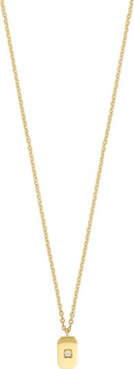A single inset diamond adds a wink of shine to a hexagonal tag pendant in this 18-karat-gold necklace.
