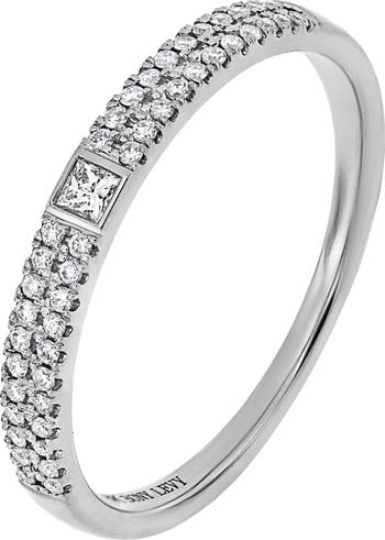 Polished and sleek, this handcrafted 18-karat-gold ring features rows of brightly sparkling round-cut diamonds.