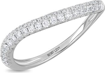 A wavy silhouette lends modern appeal to a polished, stackable band handcrafted from 18-karat gold and illuminated by dainty diamonds.