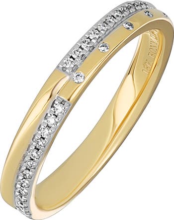 A striking two-tone silhouette defines the band of a handcrafted stacking ring forged from 18-karat gold and finished off with the elegant sparkle of diamonds.