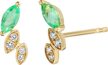 Easy-to-wear stud earrings shimmering with diamond and emerald will add significant polish to even your most casual ensembles.