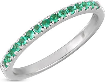 Pavé-set emeralds lend a pop of color and luxurious sparkle to a slim, stackable band handcrafted from icy 18-karat gold.