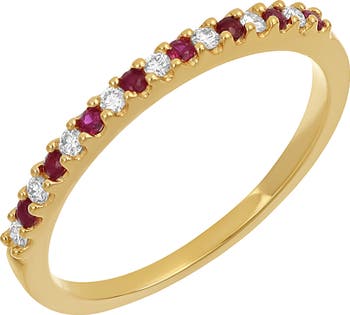 Round-cut rubies and white diamonds line a timeless stacking ring handcrafted in 18-karat gold.