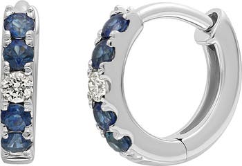 Eight sapphires with two fiery diamonds offer rich color and eye-catching sparkle on each of these handcrafted 18-karat-gold hoop earrings.
