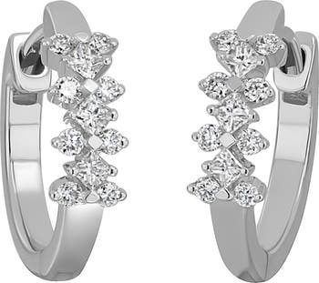 Glamorous hoop earrings handcrafted from icy 18-karat gold feature shimmering bright-white diamonds to elevate your lobes on special outings.