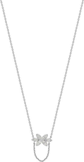 A delicate chain necklace handcrafted from icy 18-karat gold is centered by a diamond-adorned pendant to bring elegant sparkle to elevated looks.