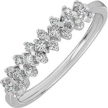 Twinkling white diamonds lend elegant sparkle to a delicate stacking ring handcrafted from icy 18-karat gold.