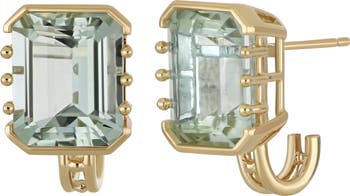 Faceted green amethyst stones catch the light with every move in these bezel-and prong-set earrings crafted from 14-karat gold.