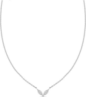 Prong-set round diamonds enrich the marquise-shaped motifs of this dainty pendant necklace handcrafted from polished 18-karat white gold.