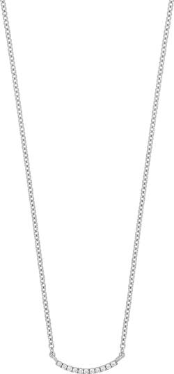 A delicate chain necklace handcrafted from 18-karat gold is centered by a curved bar pendant adorned with dazzling diamonds.