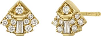 Twinkling diamonds lend luxurious sparkle to geometric-shaped studs that brings the Art Deco aesthetic to your lobes.