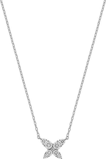 An icy 18-karat-gold setting brightens this delicate chain necklace centered by a whimsical butterfly pendant adorned with bright-white diamonds.