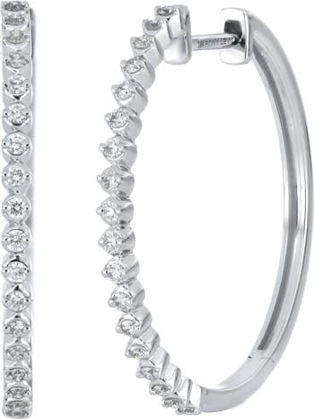 A row of twinkling diamonds lend luxurious glamour to 18-karat-gold hoops that bring timeless elegance to your lobes.