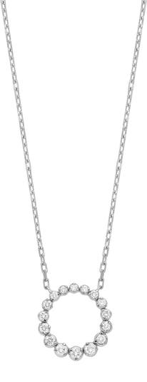 A dainty circle of graduated diamonds shimmers at the heart of this exquisite necklace handcrafted from 18-karat white gold.