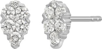 A twinkling total of 18 round diamonds sparkles from pear-shaped studs set in 18-karat gold.