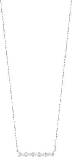 Seventeen twinkling diamonds illuminate the bar-styled pendant on a delicate chain necklace handcrafted from 18-karat gold.