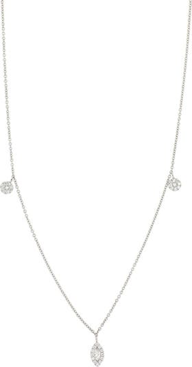 Dainty diamond-adorned charms illuminate a thin chain necklace handcrafted from 18-karat white gold.