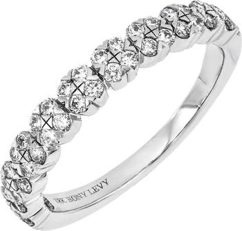 Quadrants of bright-white diamonds lend sophisticated shimmer to a stackable band handcrafted from 18-karat white gold.