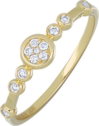 Bright-white diamonds add elegant sparkle and shine to a polished stacking ring handcrafted from warm 18-karat gold.