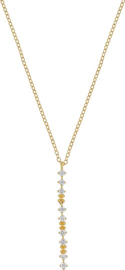 Nine prong-set round diamonds illuminate this dainty Y-necklace handcrafted from warm 18-karat yellow gold.