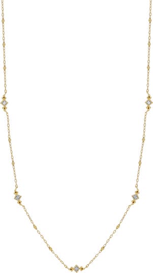 Delicate diamond stations lend beckoning sparkle to a thin chain handcrafted from warm 18-karat gold to illuminate elevated necklines.