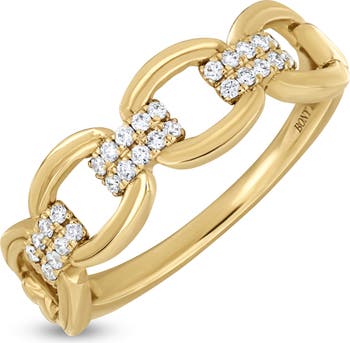 Dainty round diamonds illuminate this polished chain-link ring handcrafted from warm 18-karat yellow gold.