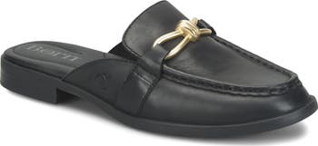 Knotted hardware brings a polished touch to this soft leather or suede mule boasting a cushy, arch-supportive footbed and a grippy rubber sole.