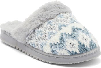 A classic Fair Isle pattern brings a festive vibe to weekend lounging in this cozy chenille slipper lined in luxuriously plush faux fur.