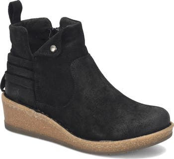 Elevate your cold-weather ensembles with this ankle-cut boot grounded on a cushioned footbed, a low wedge and a flexible sole.