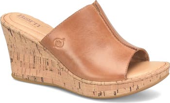 A cork-wrapped wedge heel elevates a minimalist sandal that will complement your trendsetting wardrobe.