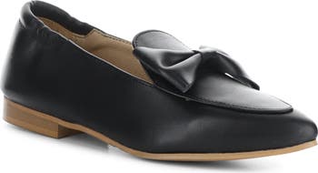 A stylish vamp bow and pointy moc toe amplify the contemporary appeal of a rich leather loafer grounded by a cushioned footbed for all-day comfort.
