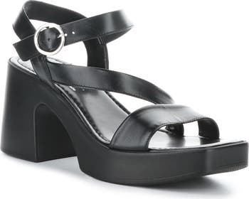 Asymmetric straps saunter over the vamp of a square-toe sandal lifted by a chunky platform and block heel. A cushioned footbed and adjustable buckle closure provide comfortable and secure wear.