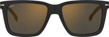 Stand out in these Havana-patterned square sunglasses finished with gleaming temple branding.