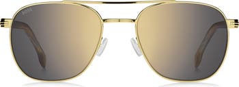 Retro-inspired sunglasses are outfitted with full-coverage UV-protective lenses and adjustable nose pads for a perfect fit.