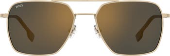 A modern twist on a timeless style, these aviator sunglasses feature a squared-off silhouette and are fitted with tinted lenses.