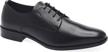 A streamlined profile brings timeless sophistication to a derby rendered in rich leather for versatile styling.