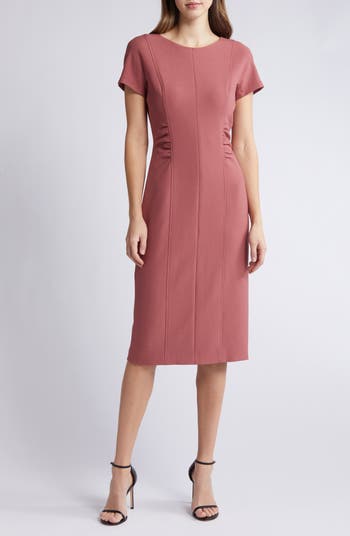 Ruched seams and a seasonless blend bring elevated charm to this sleek sheath dress that's the perfect choice for your desk-to-dinner style.