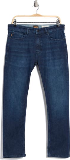 Heavy fading and whiskering make an instant old favorite of jeans cut from stretch-enhanced cotton denim in a fit that sits above the hips and stays comfortably slim down the legs.