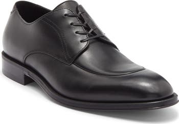 An apron toe adds versatile appeal to a well-dressed derby crafted in Italy from supple leather.