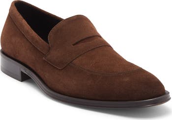 A simple penny keeper defines the minimalist vamp of a sophisticated loafer that's crafted in Italy from supple suede.
