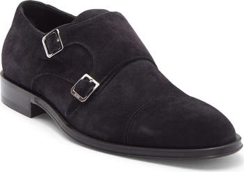 A streamlined cap toe adds versatile appeal to a vintage-inspired monk shoe crafted in Italy from buttery suede leather.