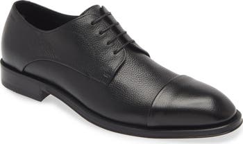 Richly pebbled leather brings old-school distinction to a derby styled with a plain cap toe and a streamlined profile that smartly finishes any formal look.