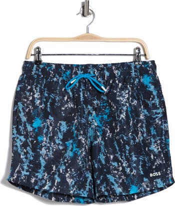 A unique pattern draws the eye to swim shorts made from recycled fabric that's lightweight and quick to dry.