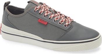 A low-top profile and chunky white sole define this sporty sneaker rendered with a smooth finish.