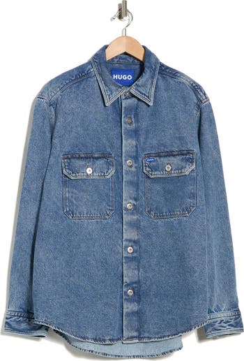 Elevate your cold-weather ensembles with this medium-washed jacket featured a button front and flap chest pockets.