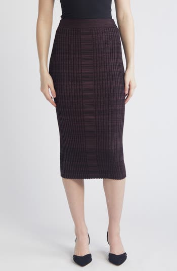 Sculpting ribbed panels at the front and back bring texture to this essential pencil skirt knit to a midi length.