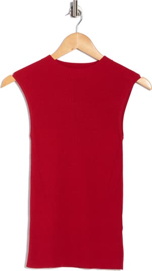 Expand your wardrobe options with a sleeveless sweater knit in a trim-fitting rib stitch and topped with a sleek mock neck.