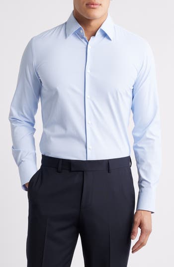 Tailored from stretchy performance jersey, this slim-fitting dress shirt makes the perfect addition to your work wardrobe with a crisp point collar and adjustable cuffs.