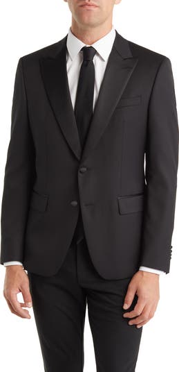 Satin lapels and pocket edges lend luxe detail to this rich virgin-wool sport coat crafted with contrast piping on the inside boasting a light sheen.