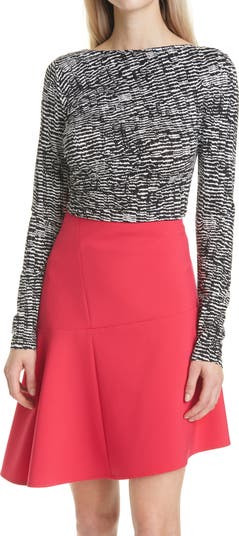 A stretch-knit top in a fitted silhouette is an excellent layering piece that will be a much-chosen addition to your black-and-white outfitting options.